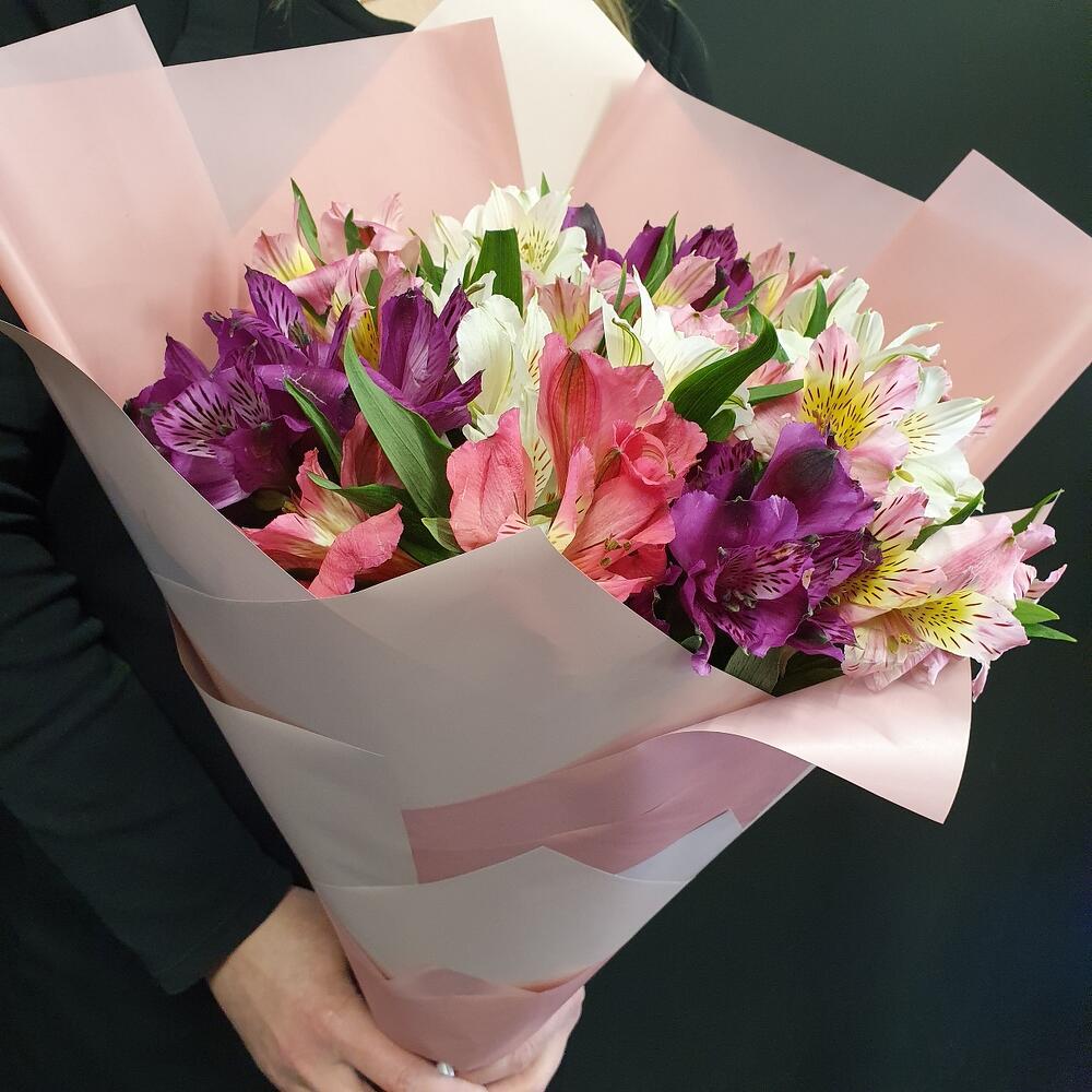 Альстромерия – 11 шт.Упаковка дизайнерская – 1 шт.Лента атласная – 1 шт.