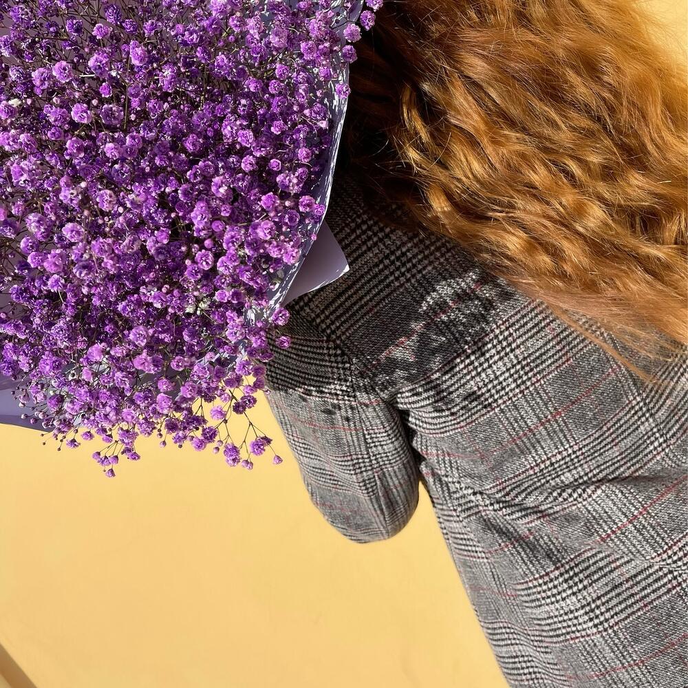 «Лавандовое созвездие» Букет из розы, гвоздики, статица и хлопка