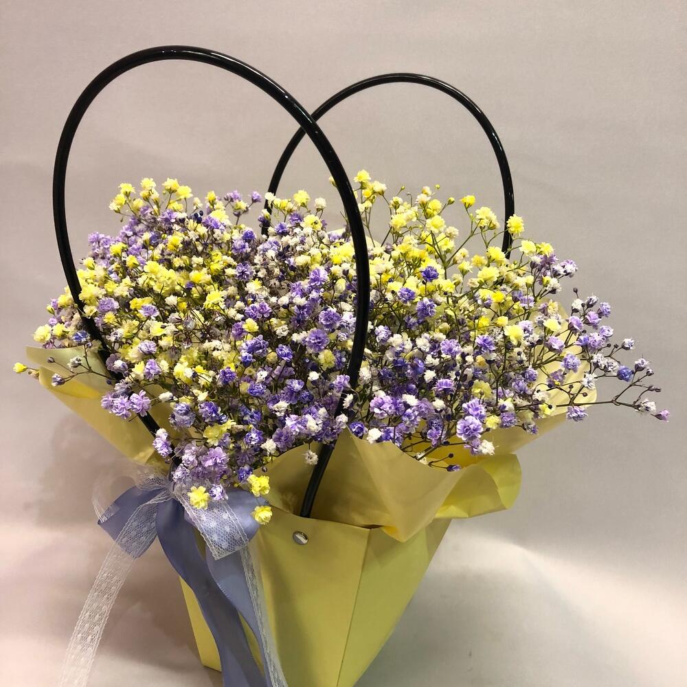 “Сиреневый туман” – композиция из гипсофилы в шляпной коробке
