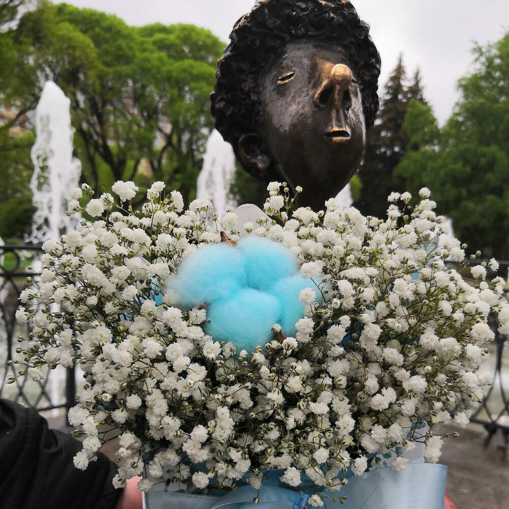 Гипсофила – 3 шт.Хлопок – 1 шт.Лента атласная – 1 шт.Оазис флористический – 1 шт.конверт картонный – 1 шт.