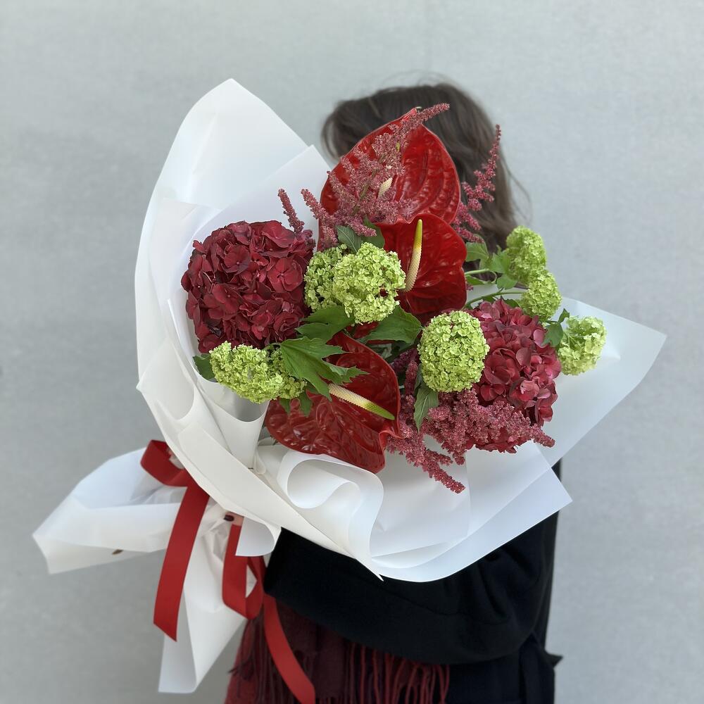Гвоздики, Гортензии, Кустовые розы, Лизиантусы, Розы