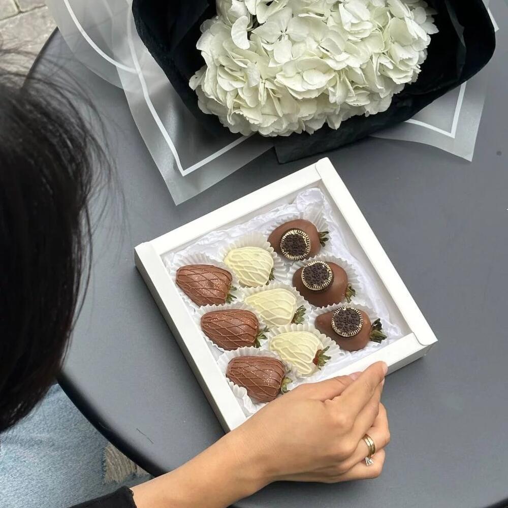 Клубника в шоколаде – 9 шт. Гортензия – 1 шт.