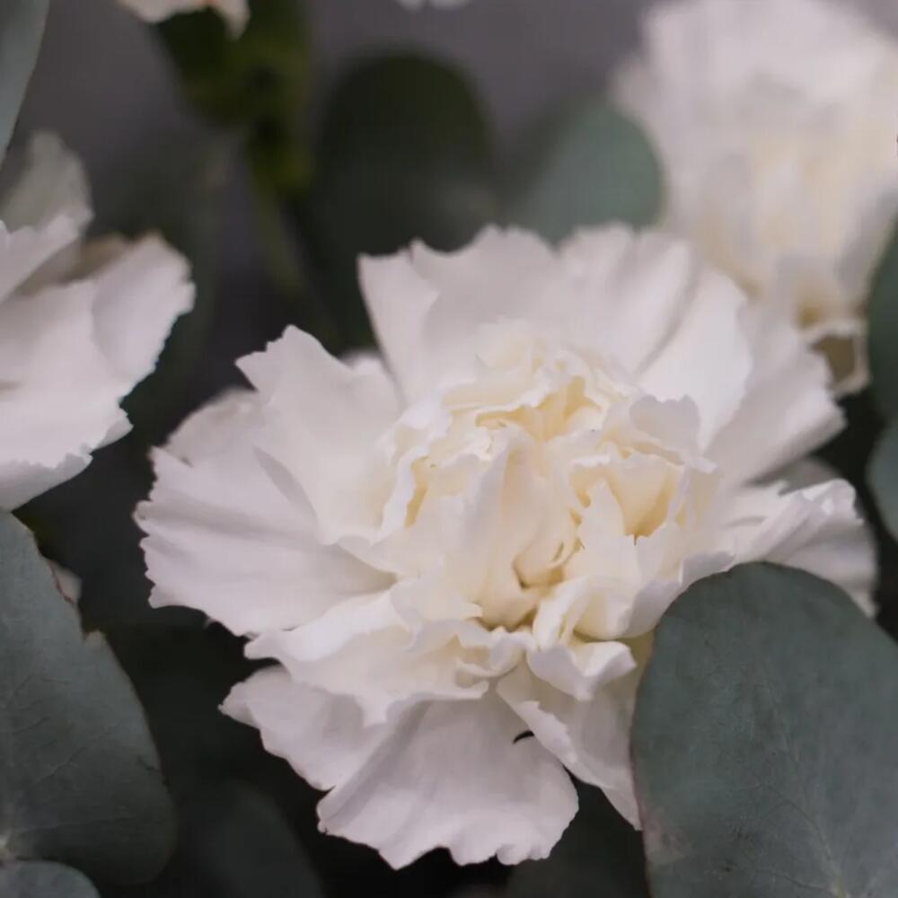 У нас широкий ассортимент цветовой палитры гвоздики: белая, светло-розовая, персиковая, желтая, салатовая, сиреневая. При желании цвет можем подобрать или сделать микс. Открытка и цвет упаковки на выбор.