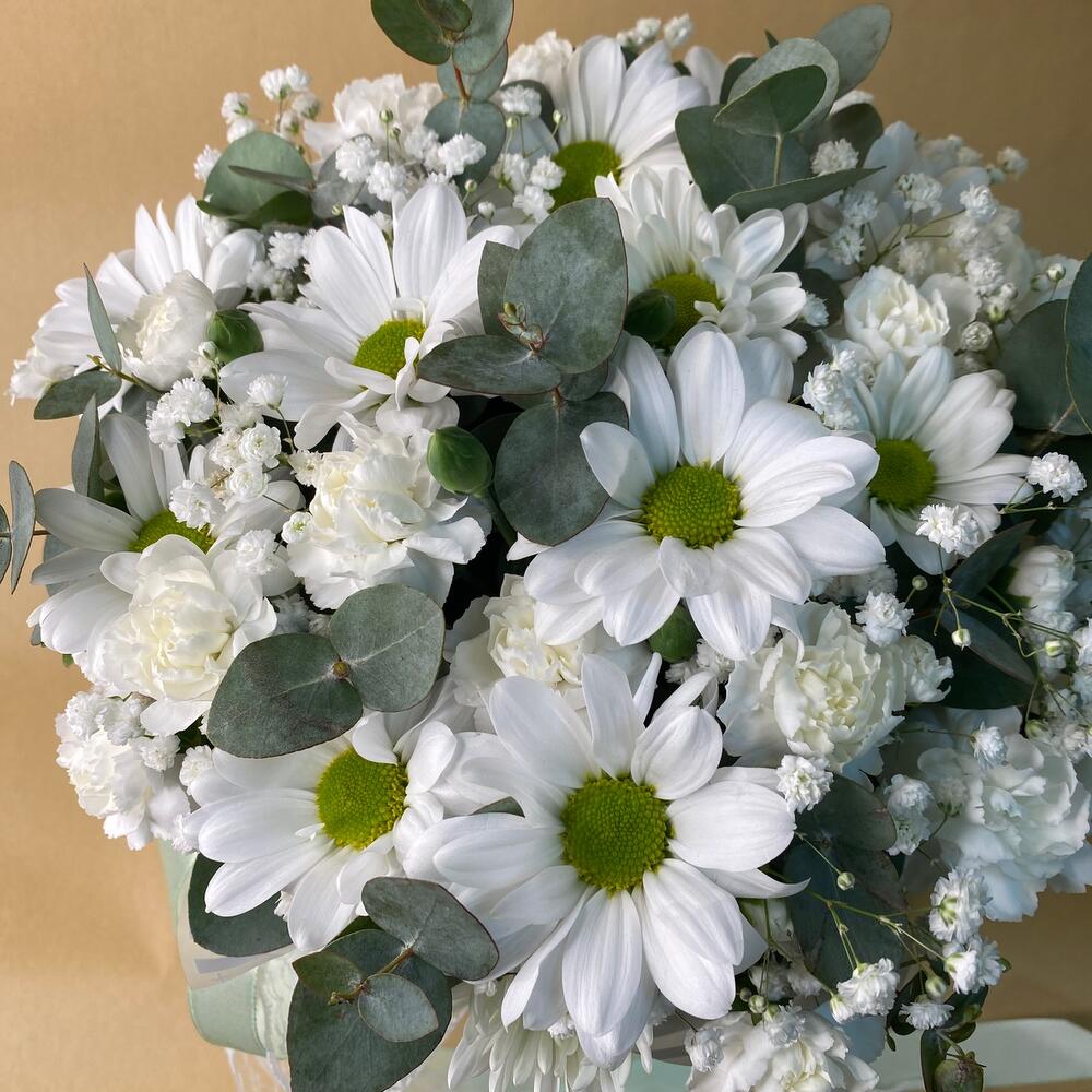 Альстромерии, Гвоздики, Кустовые розы, Лизиантусы, Розы, Хризантемы