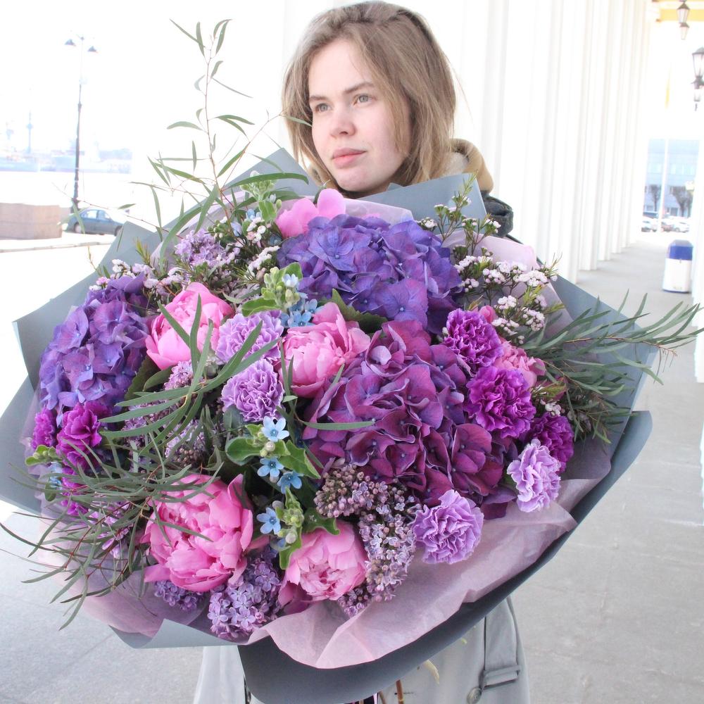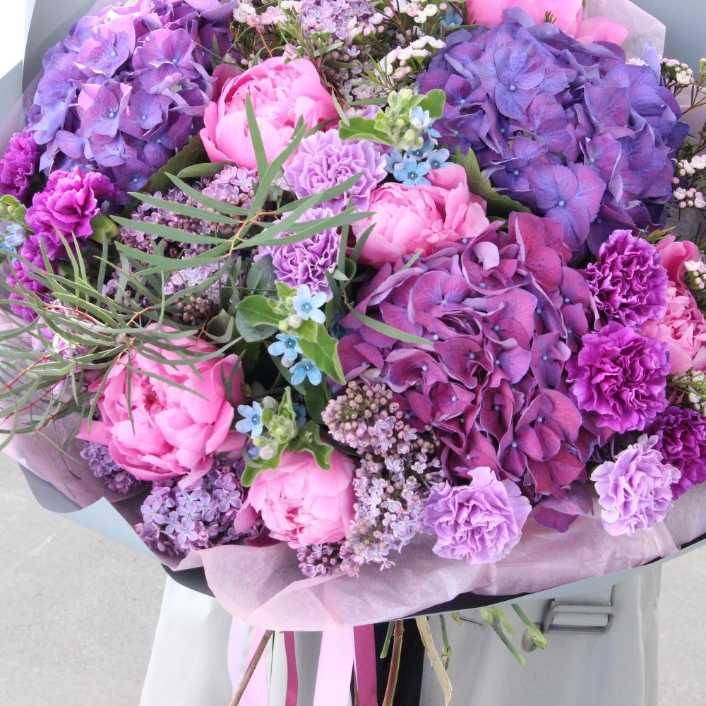 Лиловый поцелуй - Гортензии, пионы и восковой мирт