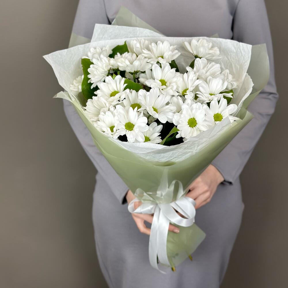 Букет хризантем (ромашковидных) с салалом, 5 шт