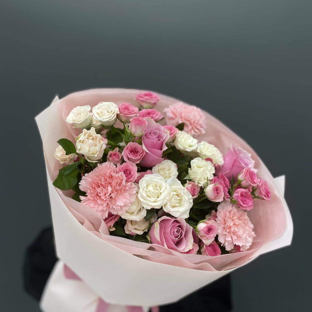 Альстромерии, Кустовые розы, Лизиантусы, Пионовидные розы, Розы, Ромашки