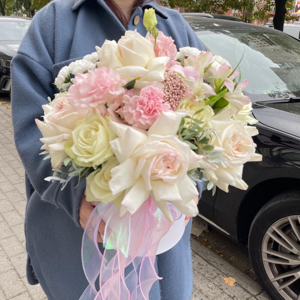 "В твоих глазах": нежная шляпная коробка с французскими розами