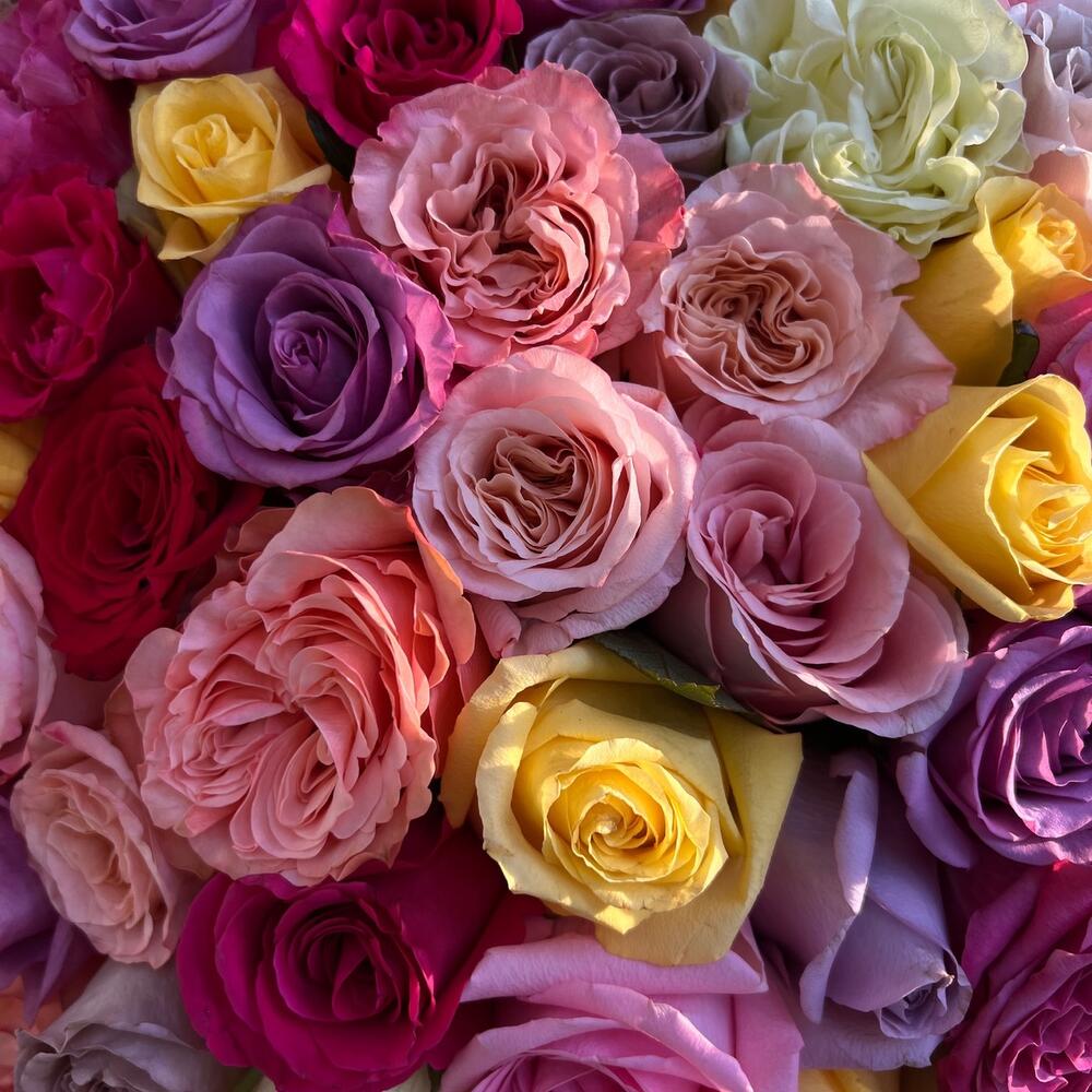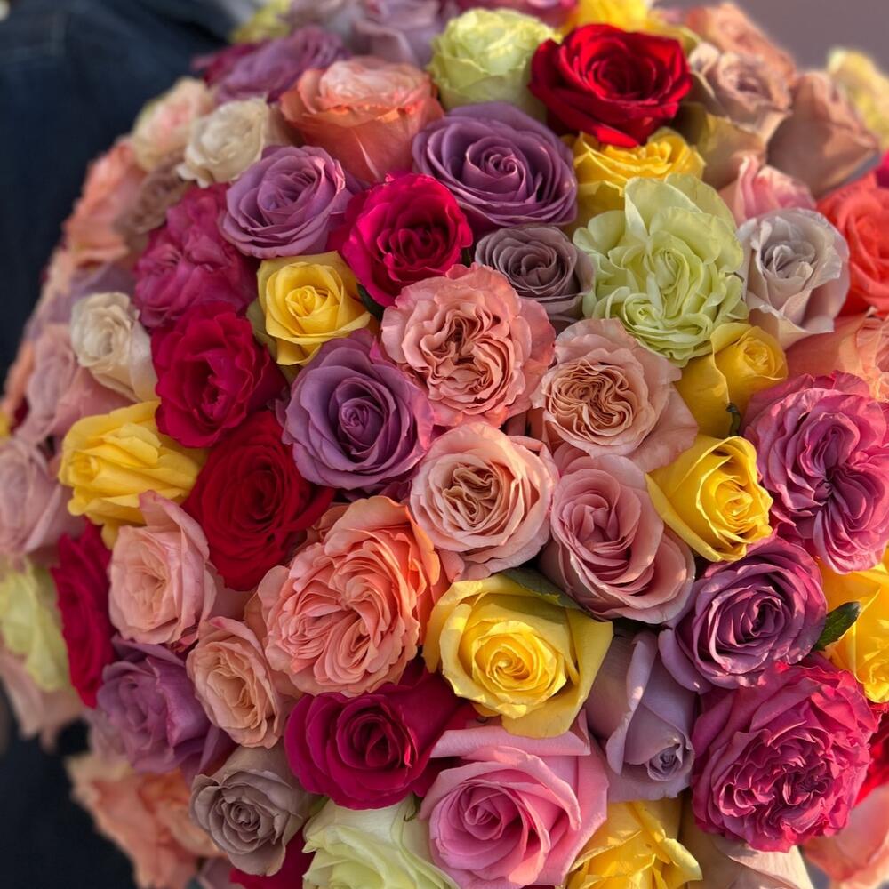 Альстромерии, Кустовые розы, Лизиантусы, Пионовидные розы, Розы, Ромашки