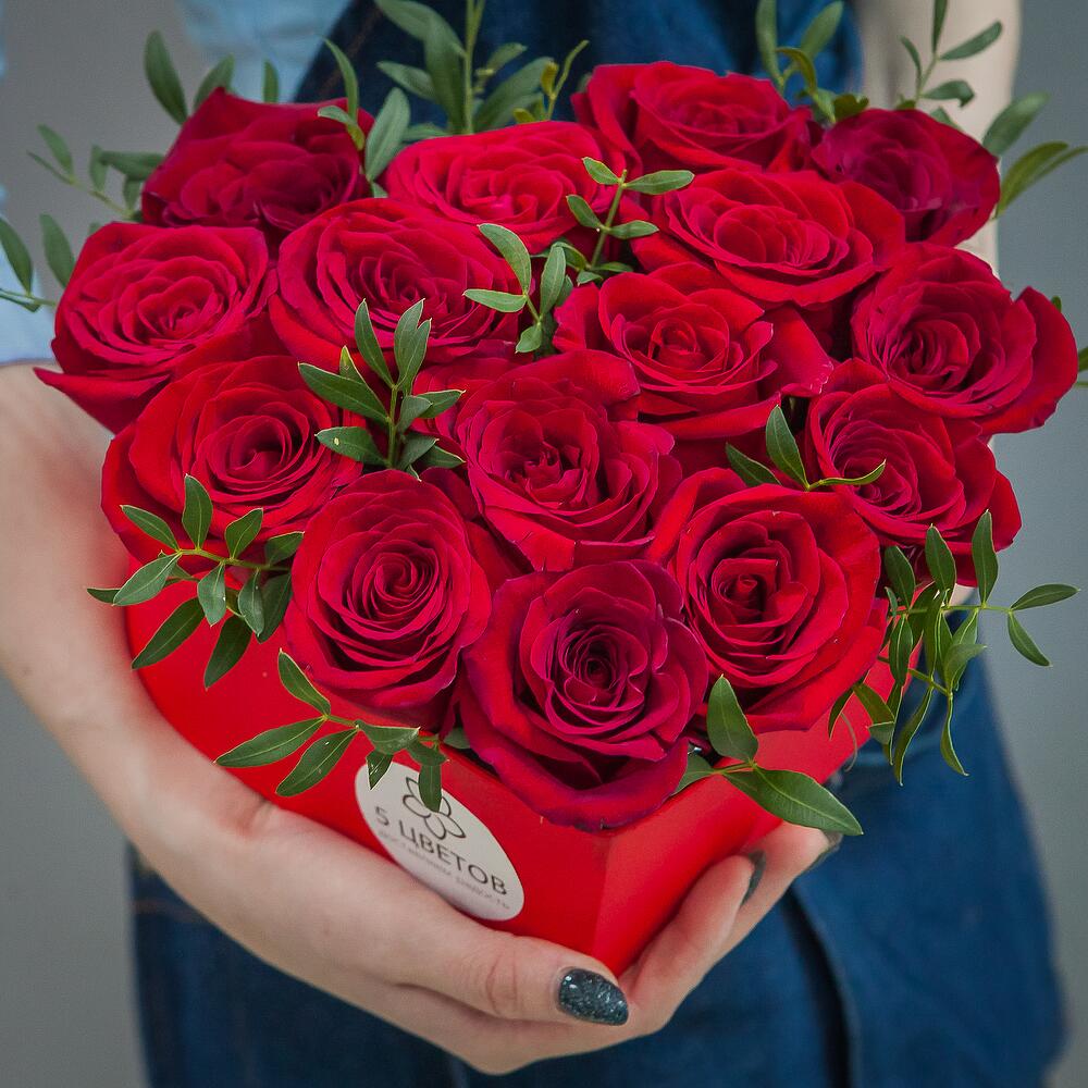 15 красных роз а коробке «сердце»