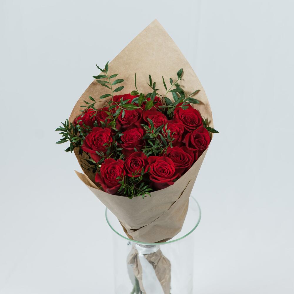 15 роз explorer премиум 50 см в крафте с зеленью