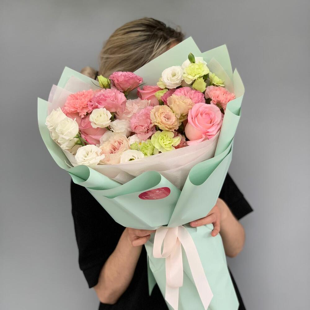 Гвоздики, Кустовые розы, Лизиантусы, Пионовидные розы, Розы