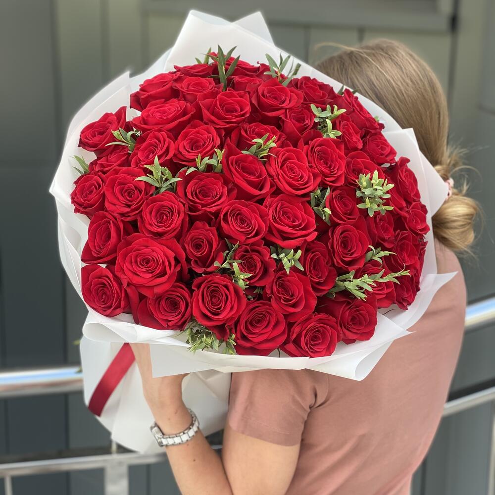 Метки: 14 февраля, 51 роза, Красные розы, от 5000 руб, Роза 50 см