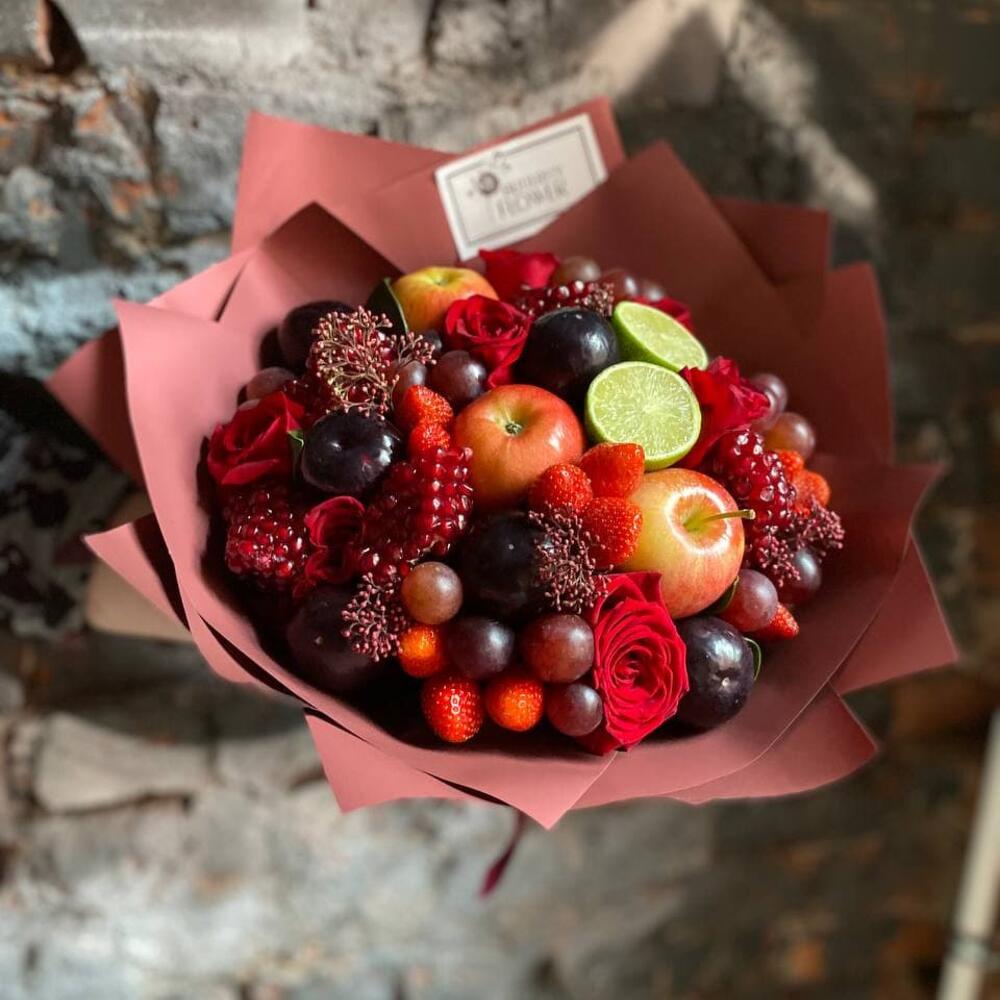 Букет из яблок, слив, винограда, клубники и слив “Бургундия”