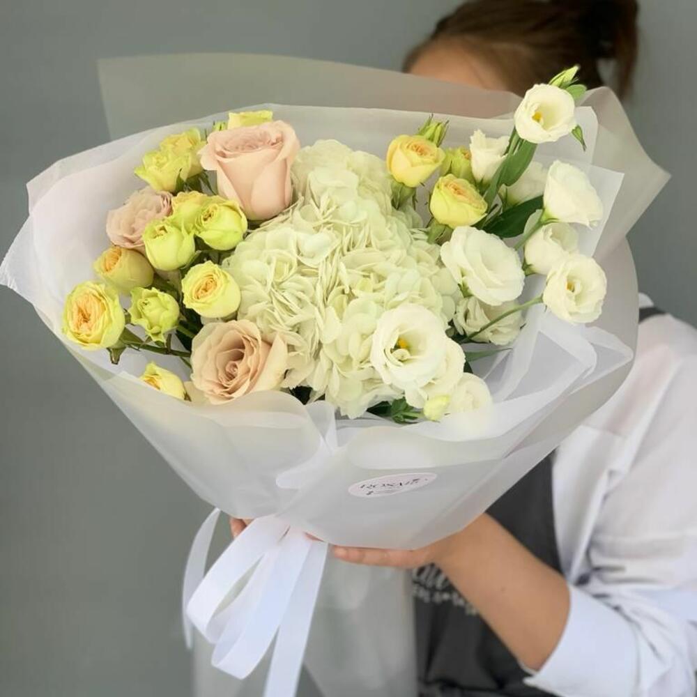Альстромерии, Кустовые розы, Лизиантусы, Пионовидные розы, Розы, Ромашки