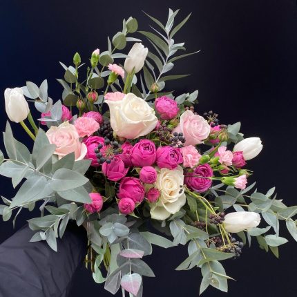 Авторский микс из розы и эустомы. Доставка цветов в Тбилиси.