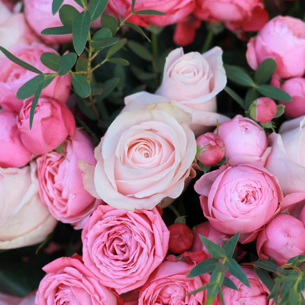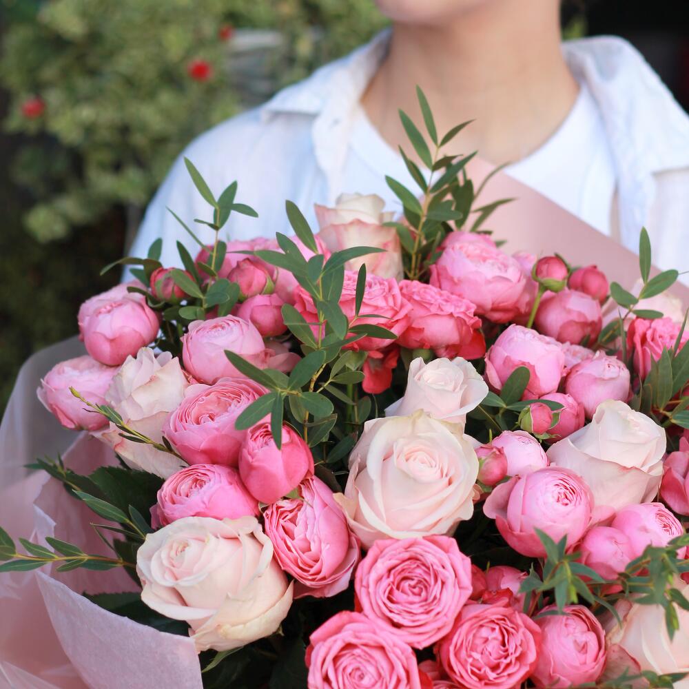 Гортензии, Кустовые розы, Лизиантусы, Пионовидные розы, Розы
