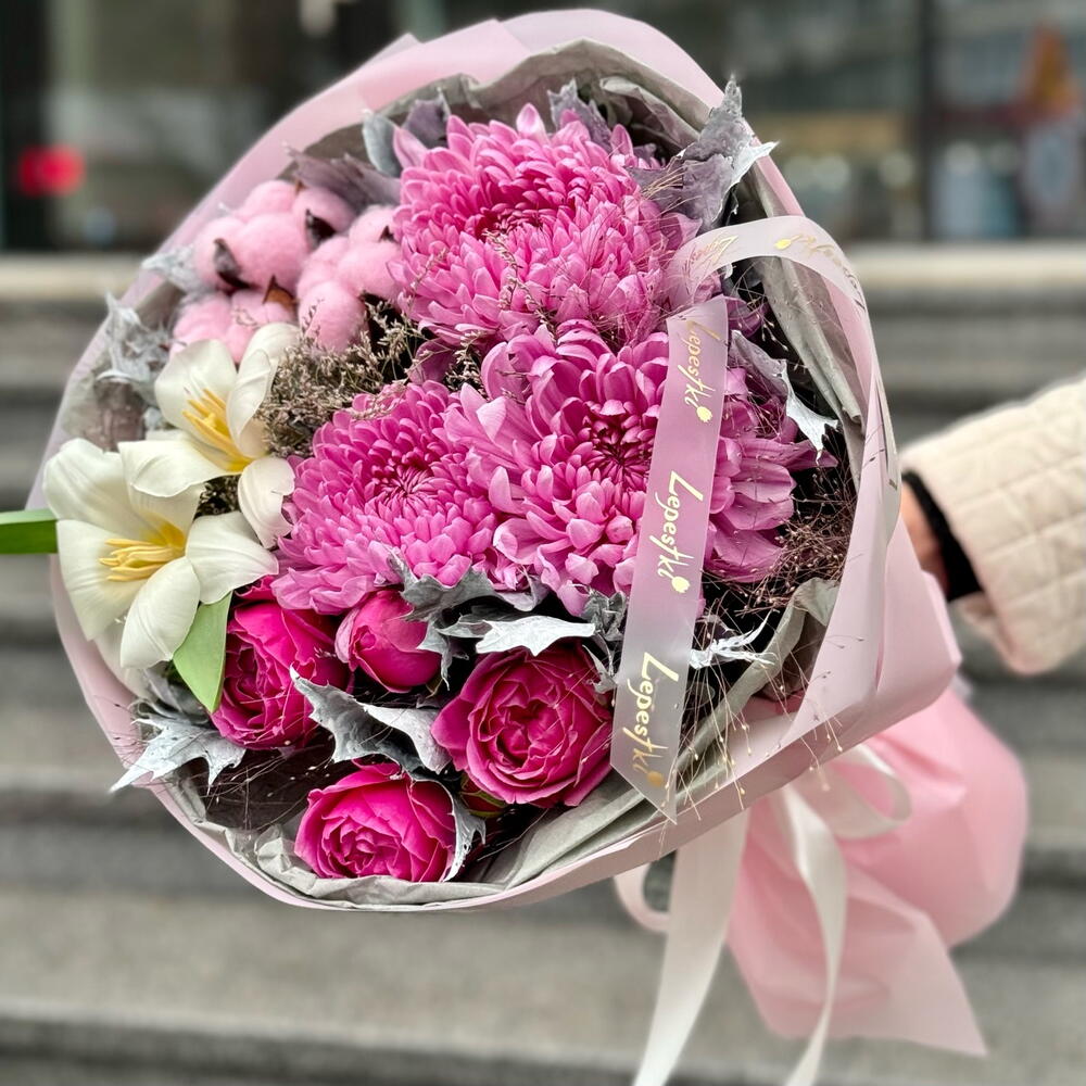 Кустовые розы, Лизиантусы, Розы, Сухоцвет