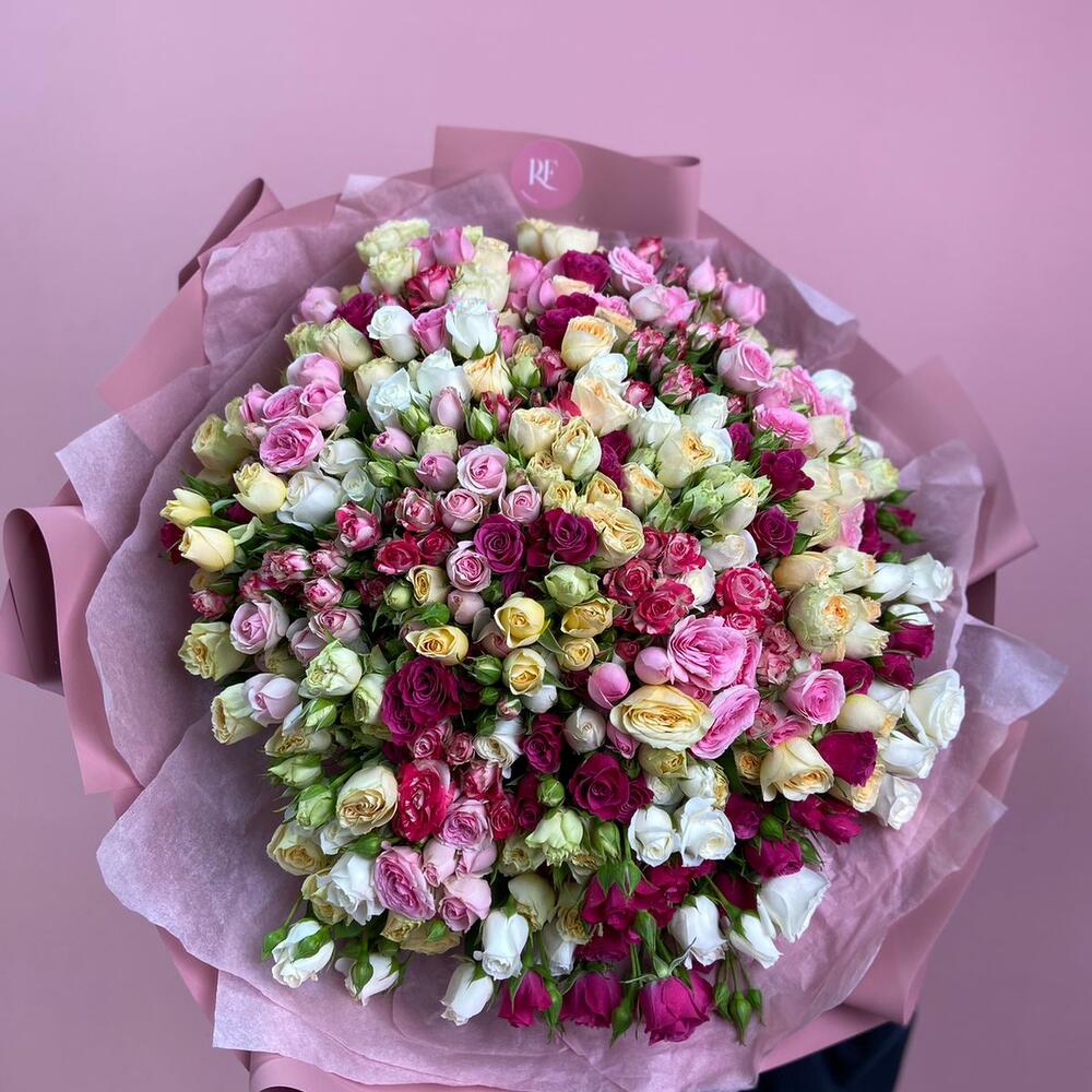 Гвоздики, Кустовые розы, Лизиантусы, Пионовидные розы, Розы