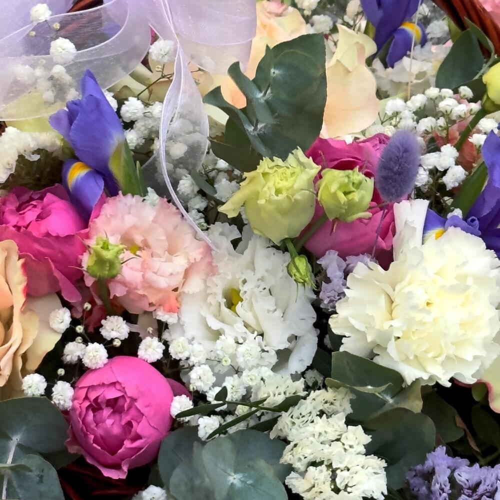 Гвоздики, Лизиантусы, Розы, Тюльпаны