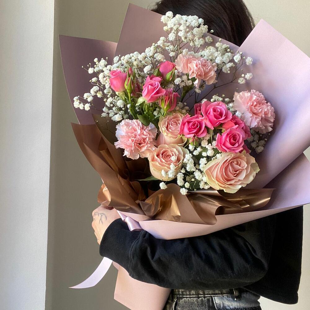 Гвоздики, Кустовые розы, Лизиантусы, Пионовидные розы, Розы