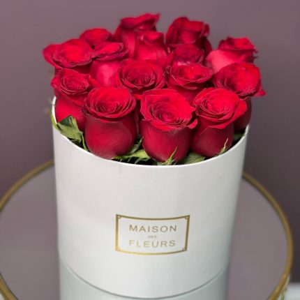35 роз с французским раскрытием в бархатный коробке гигант.