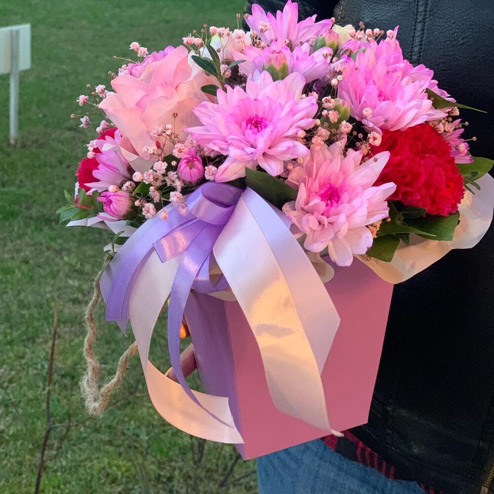 Цветы в коробочке розовой