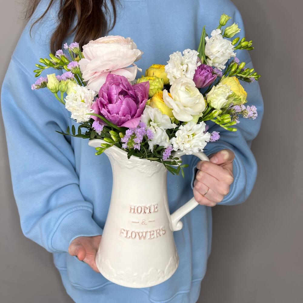 Альстромерии, Кустовые розы, Лизиантусы, Пионовидные розы, Розы, Ромашки