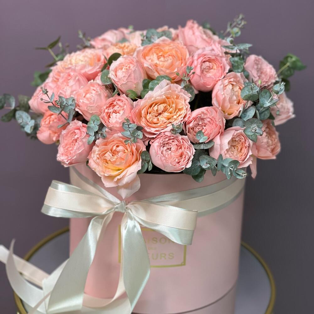 Коробка из самых нежных пионовидных кустовых роз Джульетта