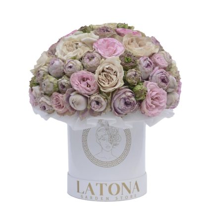 Коробка цветов ‹ABIGAIL› с кустовыми розами – Latona Flowers