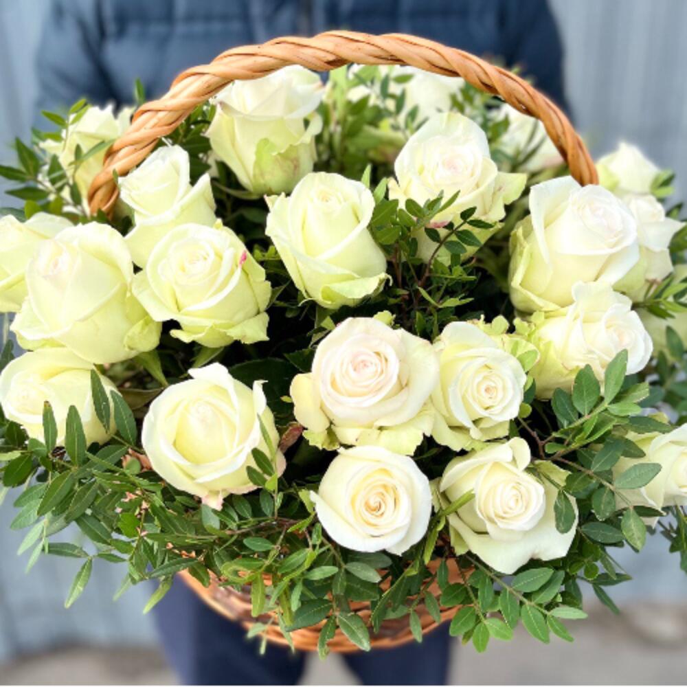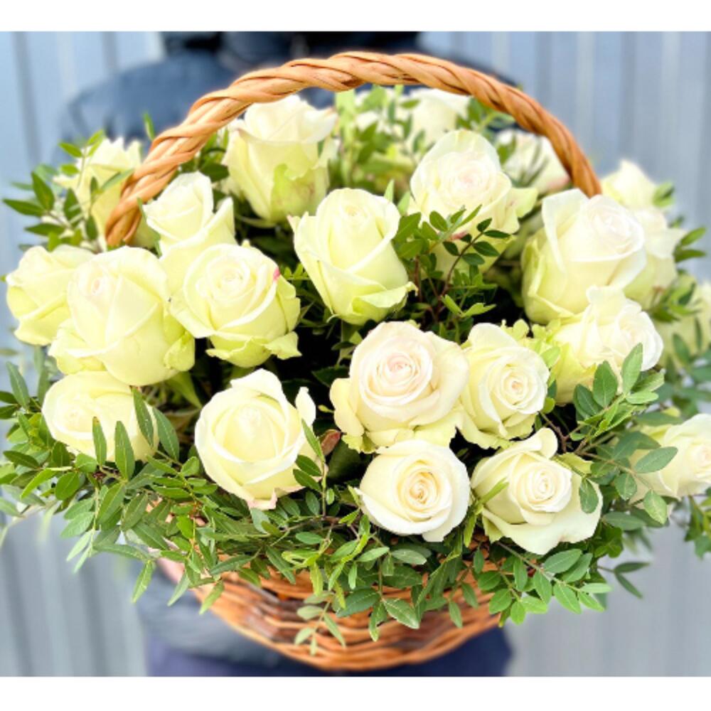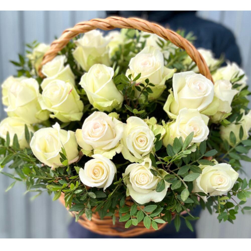 Метки: 25 роз, от 3000 до 4000 руб, цветы в корзине