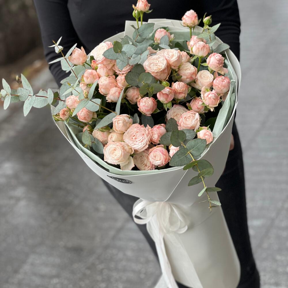 “Эвкалиптическая роскошь” гортензия и пионовидная кустовая роза