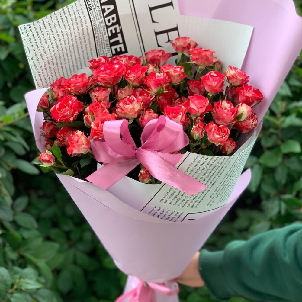 Роза кустовая – 9 шт.Упаковка дизайнерская – 3 шт.