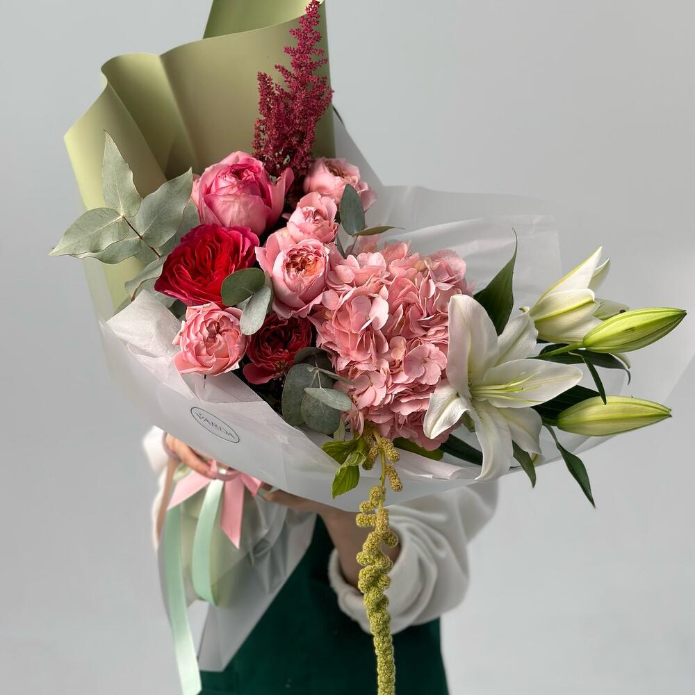 Кустовые розы, Лизиантусы, Пионы, Розы, Хризантемы