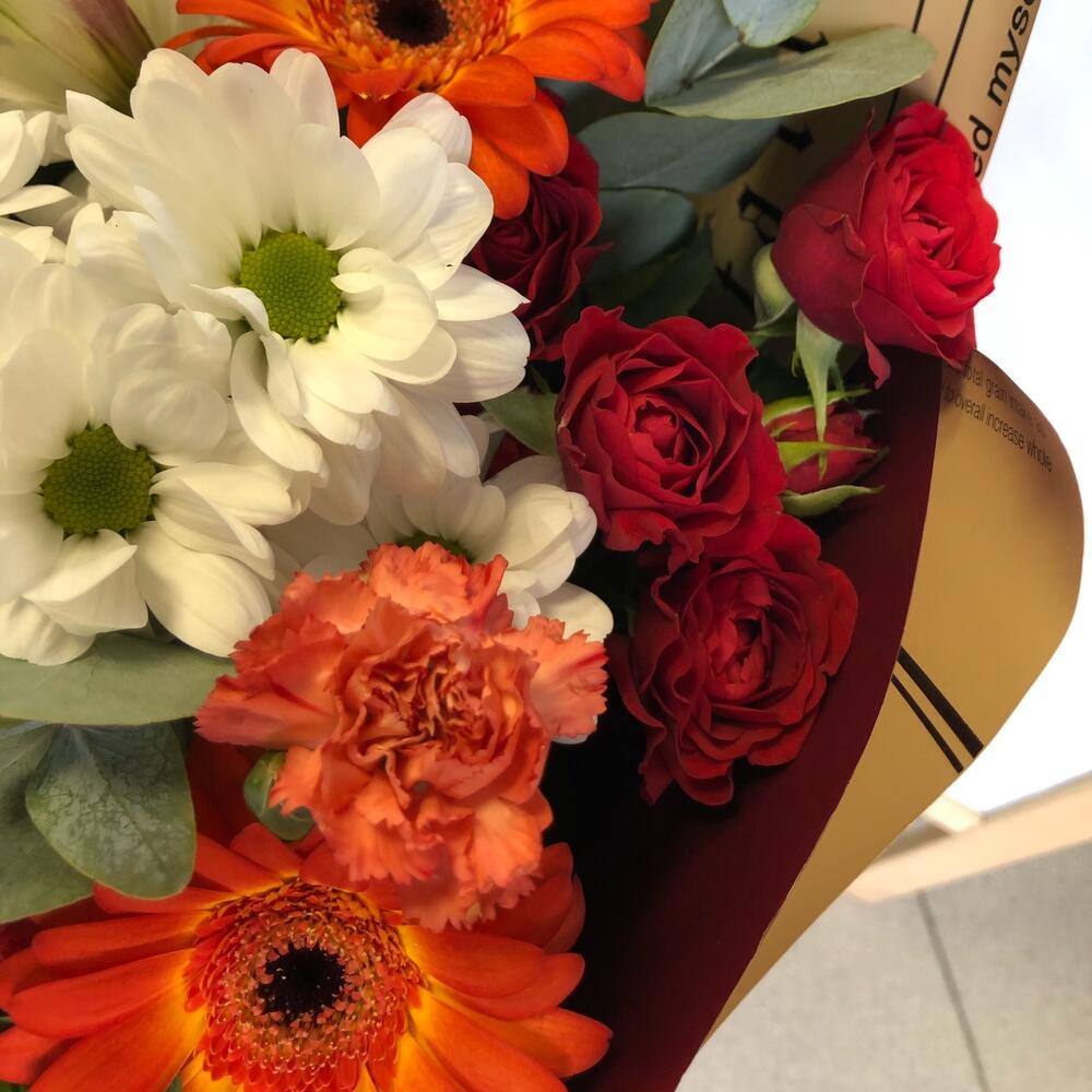 Категорий: Альстромерии, Гвоздики, Кустовые розы, Розы, Хризантемы