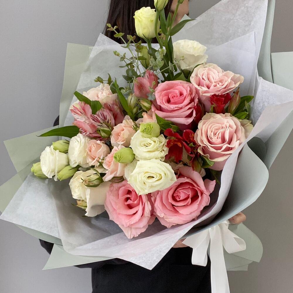Гвоздики, Кустовые розы, Пионовидные розы, Розы