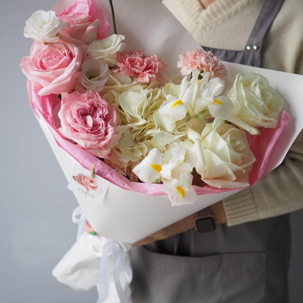 Гвоздики, Кустовые розы, Лизиантусы, Пионовидные розы, Розы