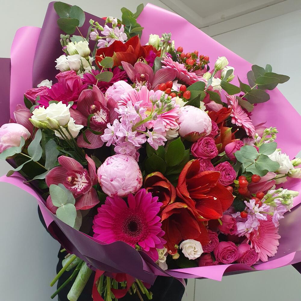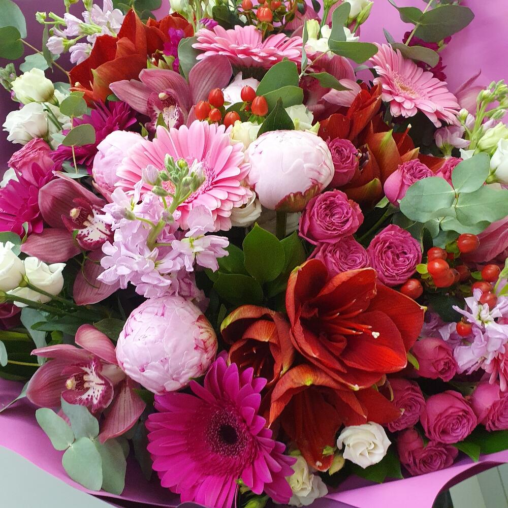 Кустовые розы, Лизиантусы, Пионы, Розы, Хризантемы