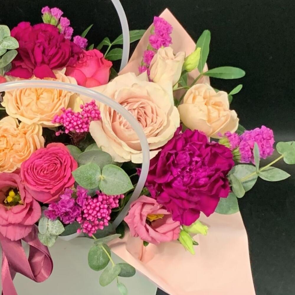 Гвоздики, Кустовые розы, Лизиантусы, Пионовидные розы, Розы