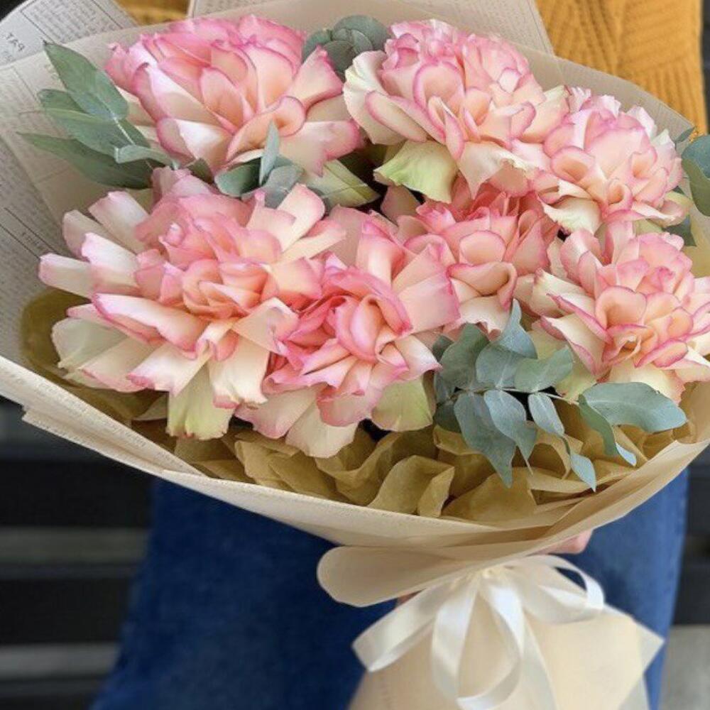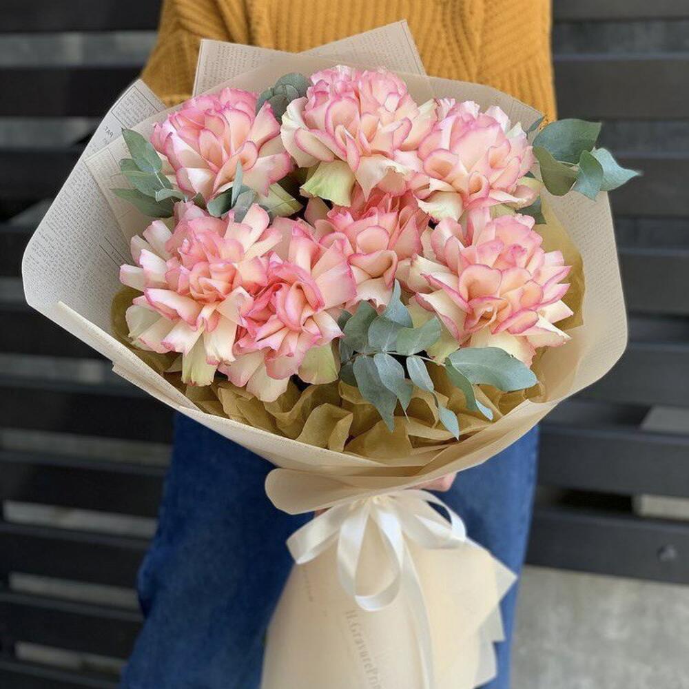 Гвоздики, Кустовые розы, Лизиантусы, Пионовидные розы, Розы